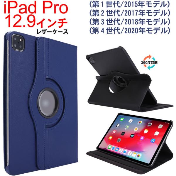 iPad Pro 12.9インチ 2015モデル第一世代/2017モデル第二世代/2020年モデル(第 4 世代) PUレザーケース 360度回転可能 ネコポス送料無料