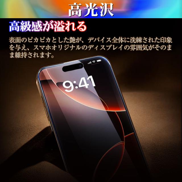 ディスプレイに光沢感を与えつつ、画面の鮮明さや美しさを引き立てるための保護フィルムです。画面をしっかり保護しながら、ディスプレイの鮮明さと美しさを最大限に引き出すアクセサリーです。特に、光沢感のある滑らかなタッチ操作や、クリアで鮮やかな画面表示を好むユーザーに最適な選択肢です。