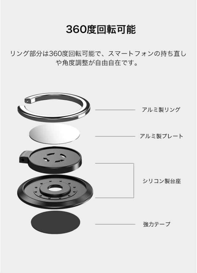 スマホリング 薄型 スマホリング マグネット スマホリング おしゃれ ホールドリング スマホ リングホルダー 落下防止 360度回転 車載ホルダー対応 角度調整