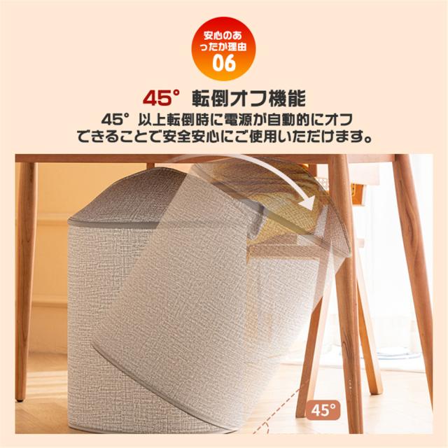 5、転倒時電源OFF機能。商品が45度以上倒れると、電源が自動的に切ります。