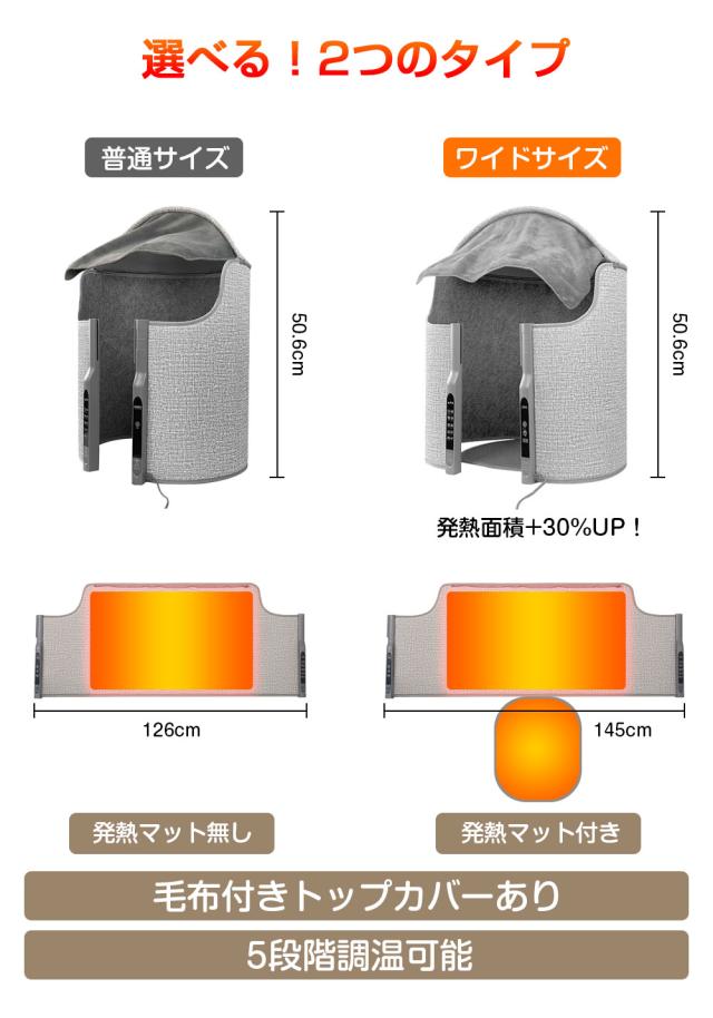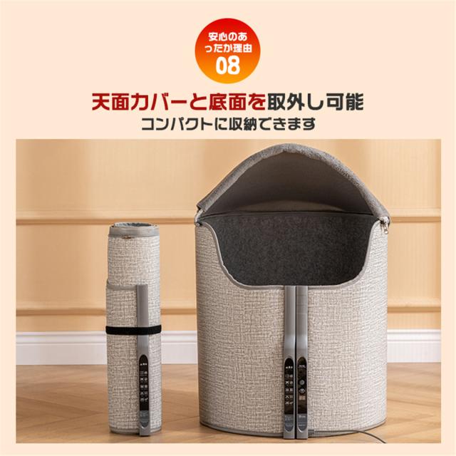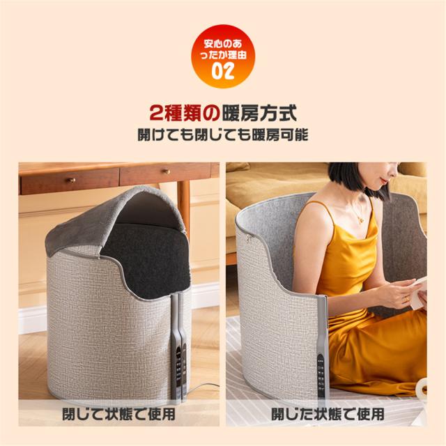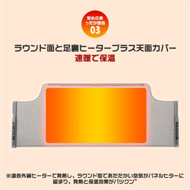 遠赤外線カーボンヒーターをパネルに内蔵し足元からじんわ〜りと暖め、全身まで暖めます。