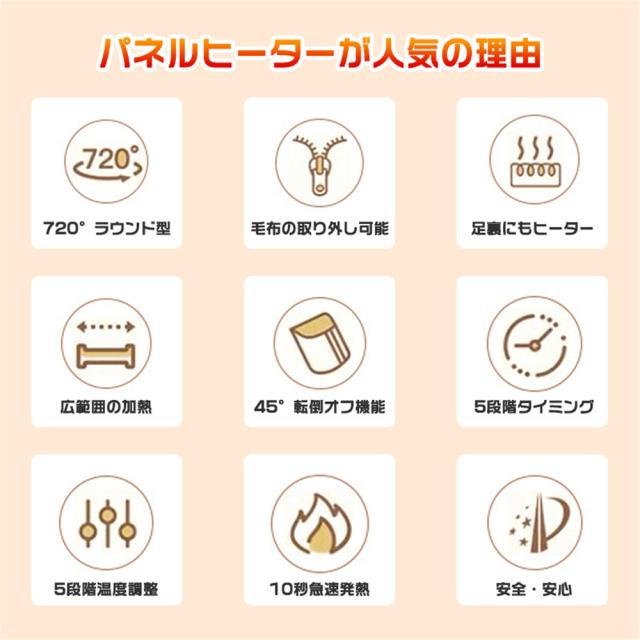 1、即暖機能:10秒ですぐに温まります。