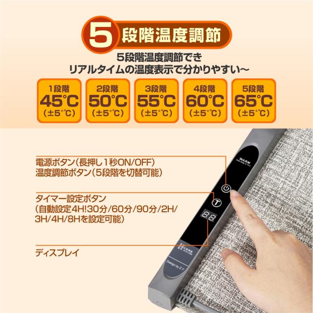 2、5段階温度調節機能:1段階/2段階/3段階/4段階/5段階。