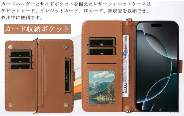 ・カードホルダーとサイドポケットを備えたレザーウォレットケースはデビットカード、クレジットカード、IDカード、領収書を収納でき、外出中に便利です。