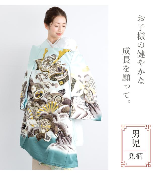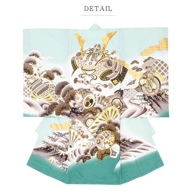 初着 産着 男の子 販売 長襦袢付き ブルー 青 兜 荒波 金駒刺繍 掛け着 祝着 お宮参り お祝い ベビー 赤ちゃん 男児 ポリエステル 購入 送料無料