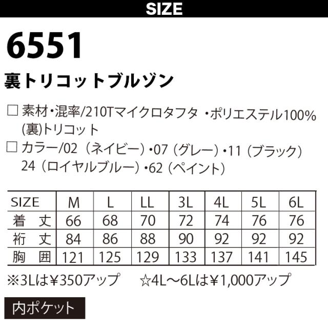 アタックベース 裏トリコットブルゾン 6551 4L〜6L 大きいサイズ 軽防寒 ラグランスリーブ ジャンパー カジュアル アウター 保温 防寒 秋冬 作業服 作業着 メンズ ATACK BASE
