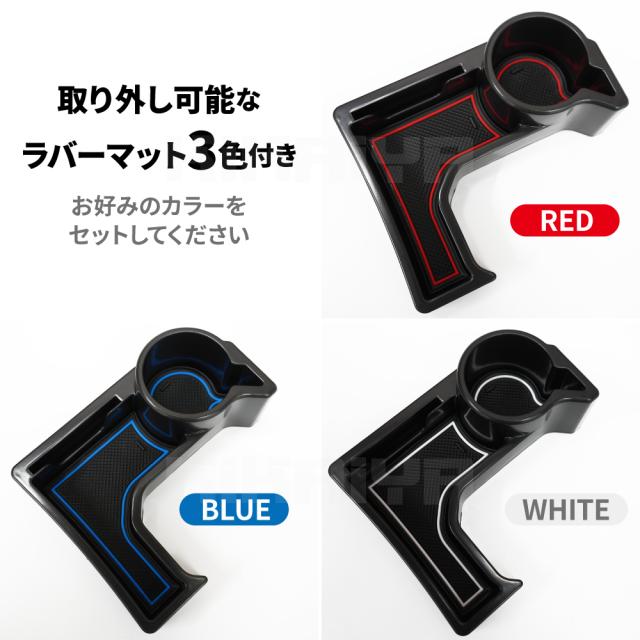 収納の少ないジムニーに小物入れを増設できる! 工具不要で簡単取り付け! ●ジムニー(JB64)、ジムニーシエラ(JB74)兼用のAT車用内装パーツです ●センターコンソールのデットスペースに置くだけ設置 トレイ裏面の面ファスナーでズレを防止します ●取り外し可能なラバーマットが付属しています 赤、青、白の3色が付属していますので、お好みのカラーをセットしてください ●丈夫なABS製で、車内によくなじむデザインです ●カップホルダー、カードホルダー、小物入れの3つの機能を備えています ●カップホルダーは350ml缶・ペットボトルがぴったりなサイズで、 スマートフォンを立て掛けて置くこともできます ※記載されている【適合車種】をご確認の上ご注文ください ※製品はお客様の自己責任にて、確実なお取り付けをお願いいたします ※ご使用上の事故、損害、破損について、当社は一切の責任を負いませんのでご了承 ください ※お使いのモニター設定、お部屋の照明等により、実際の製品と色味や素材感が異なる 場合がございます 品番:JMY-GSBOX-ATA |