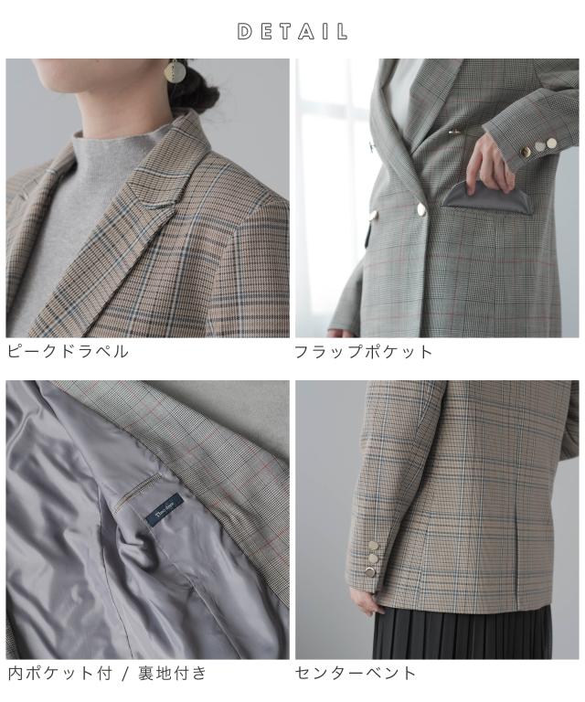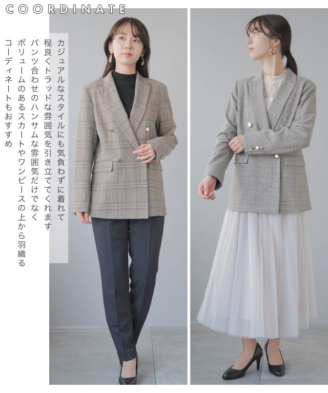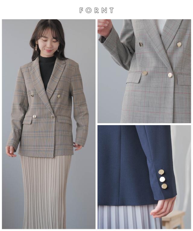 テーラードジャケット レディース ブレザー ダブル ダブルジャケット オフィスカジュアル 金ボタン ビジネス カジュアル 千鳥格子 ネイビー ベージュ グレー ゆったり 大きいサイズ M L 3L 4L 30代 40代 50代
