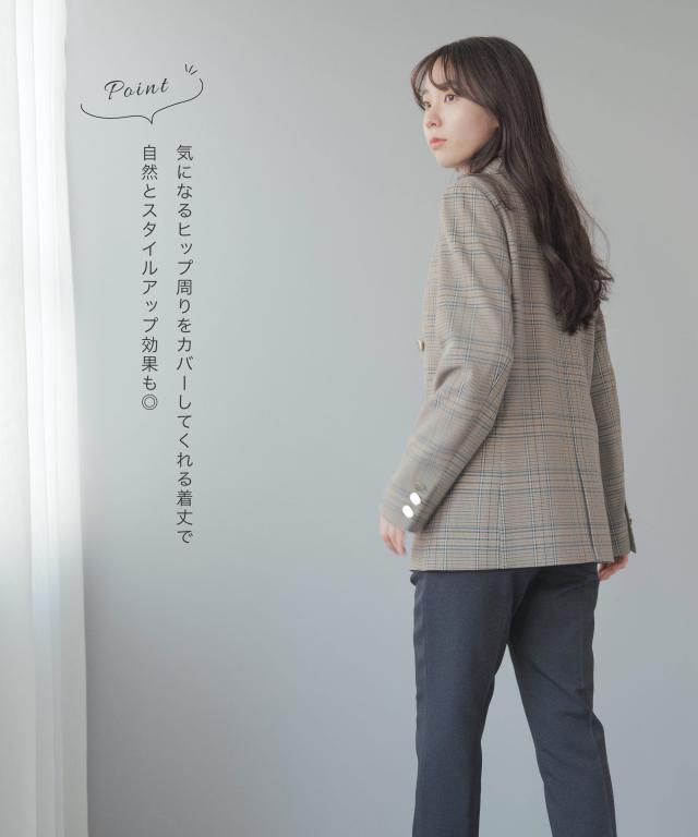 気になるヒップ周りをカバーしてくれる着丈で自然とスタイルアップ効果も