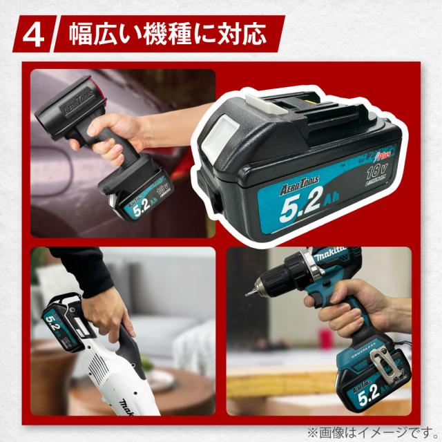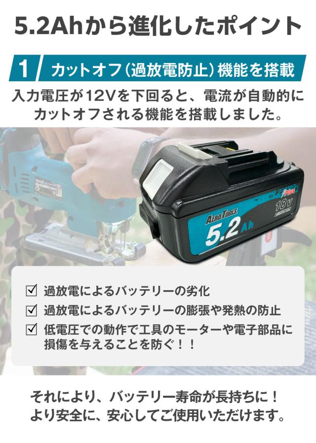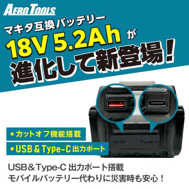 商品名:AERO TOOLS マキタ互換バッテリー5.2Ah Plus