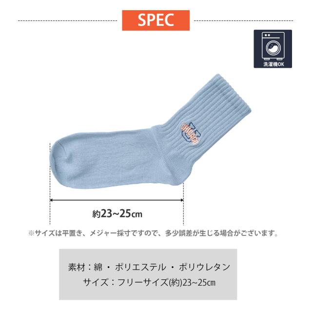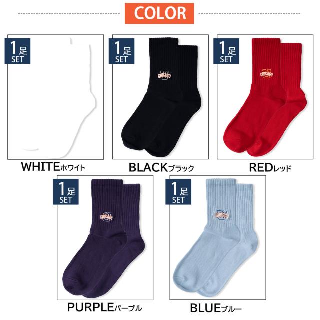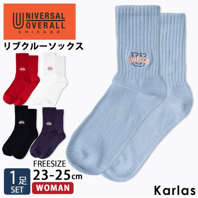 【クーポンで10%OFF】 靴下 レディース ソックス クルーソックス リブソックス 可愛い ブランド CICAGO ロゴ 刺繍 リブ おしゃれ 通勤 通学 スポーツ カラフル 5色 23-25cm UNIVERSAL OVERALL ユニバーサルオーバーオール