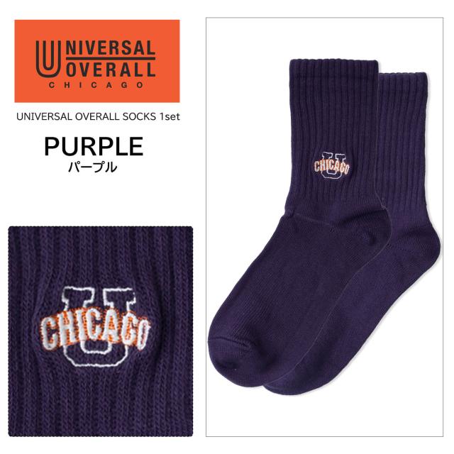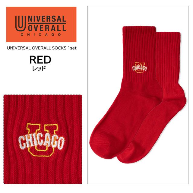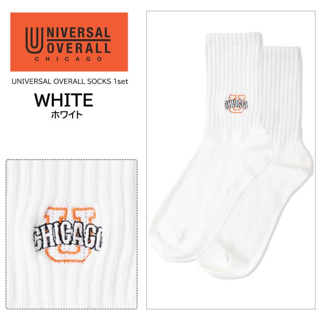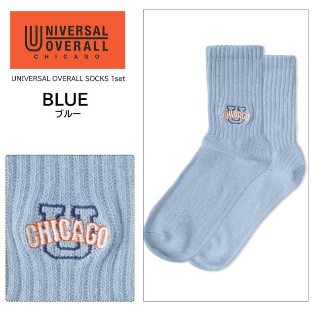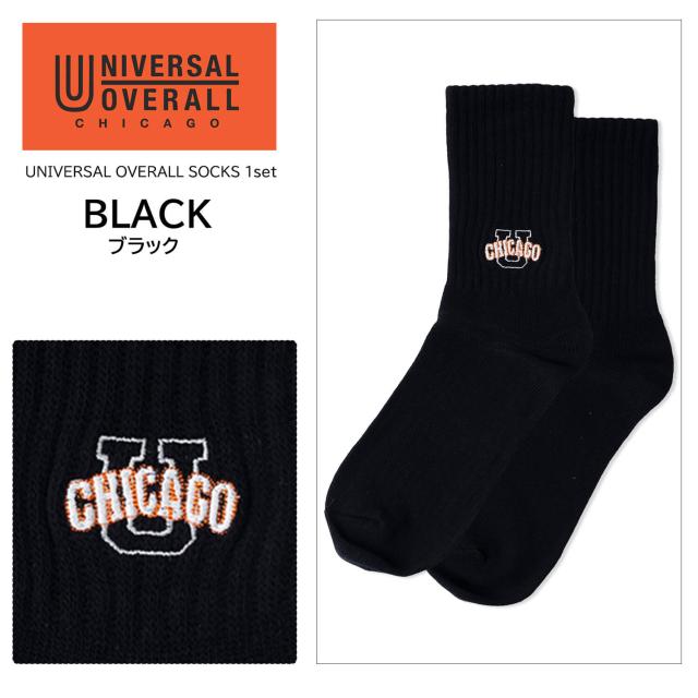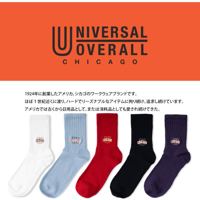UNIVERSAL OVERALLL ユニバーサルオーバーオール CICAGO ロゴ 刺繍 リブ クルーソックス 靴下 くつした 23cm 24cm 25cm |