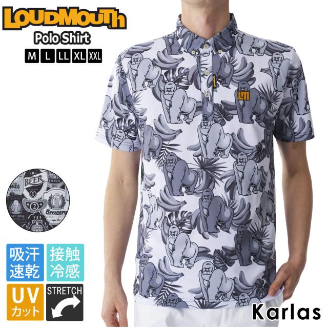 | LOUDMOUTH/ラウドマウス ゴルフウェア ブランド ロゴ 吸汗速乾 UVカット 総柄 プリント 鹿の子素材 半袖 ポロシャツ | |