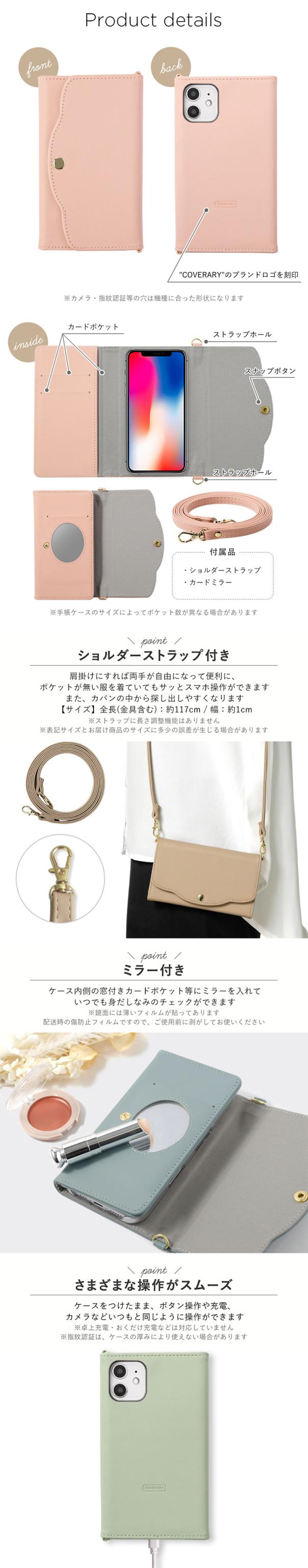 ※カメラ穴は通常の撮影時は問題なく使用できますが、広角レンズやフラッシュを使用した場合ケースのお色が写り込む場合がございます。※手帳の色・仕様が変更になる場合があります。
