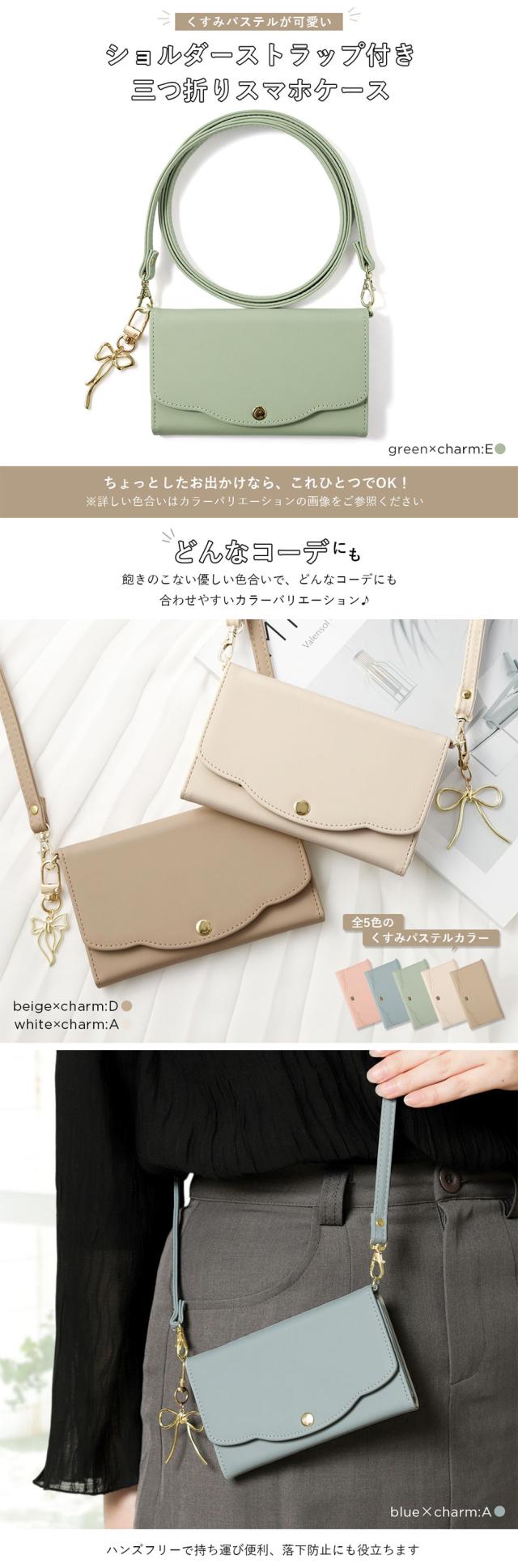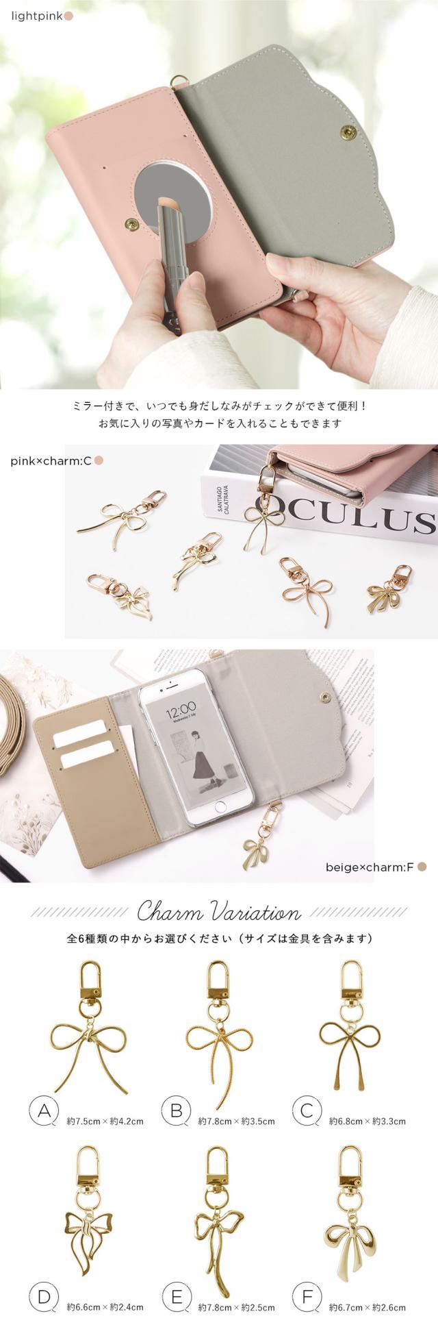レター型ショルダータイプの手帳型ケース全5色×チャーム全6種