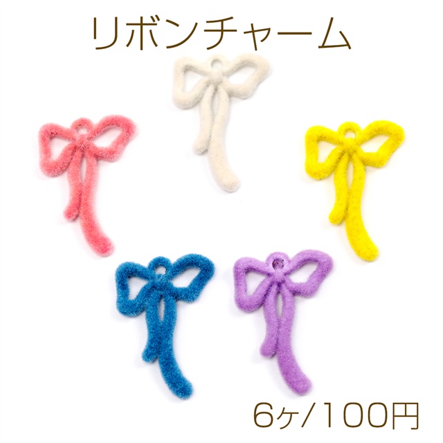 リボンチャーム フロッキーチャーム 合金製 約16×24mm(6ヶ)