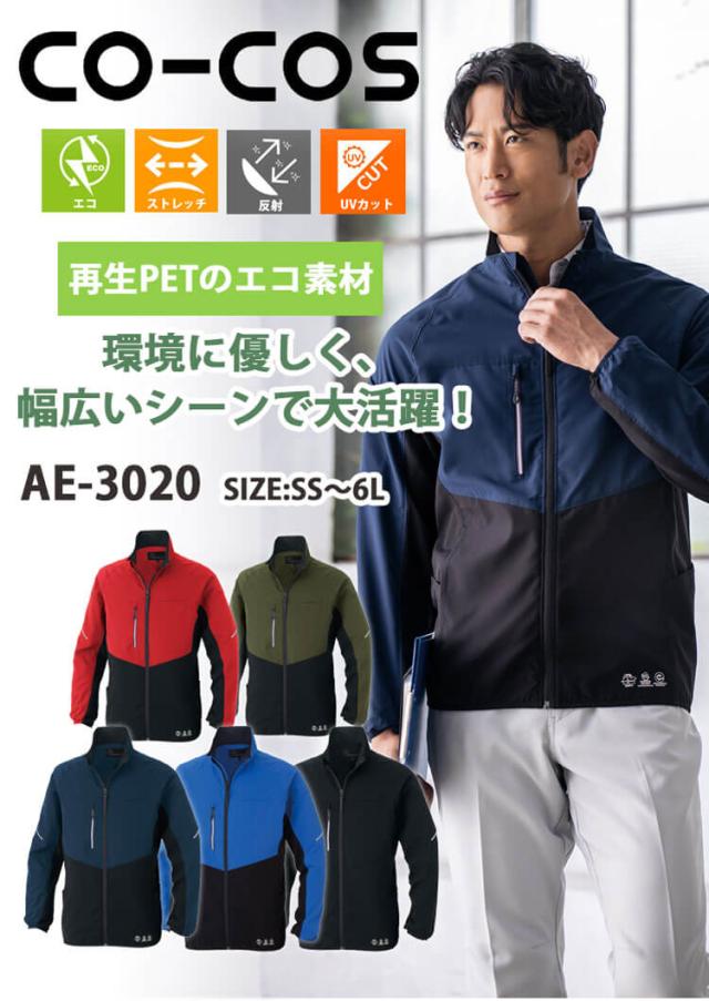 コーコス CO-COS ストレッチ ジャケット 長袖 AE-3020 通年 作業服 エコ SS〜LLサイズ