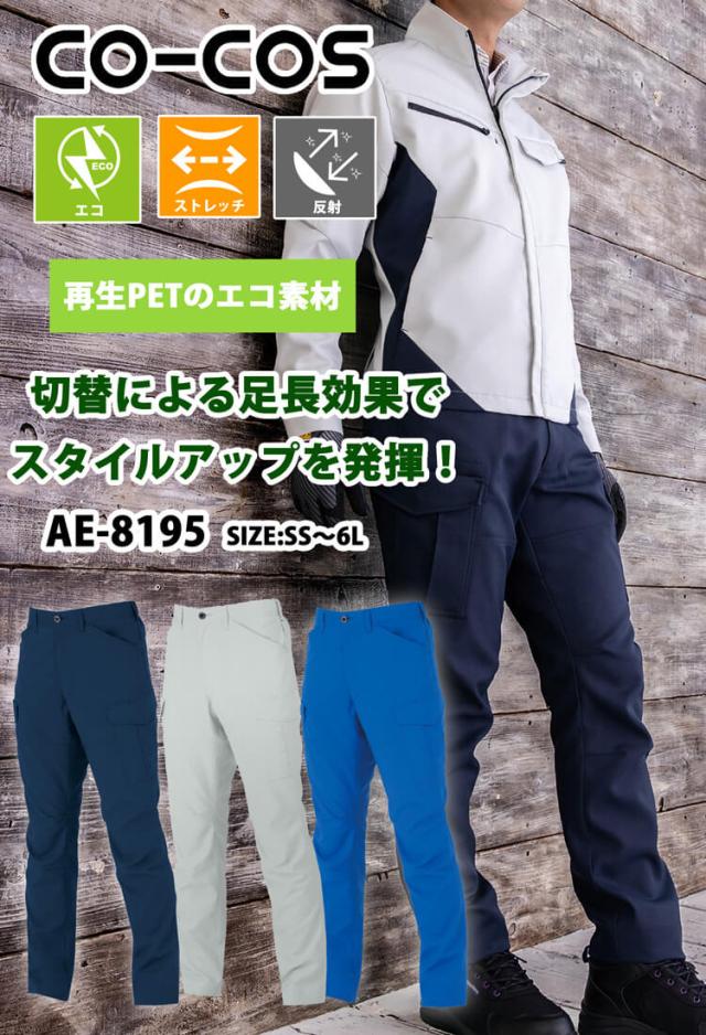 コーコス CO-COS ストレッチ カーゴパンツ AE-8195 通年 作業服 エコ 裏綿 SS〜LLサイズ