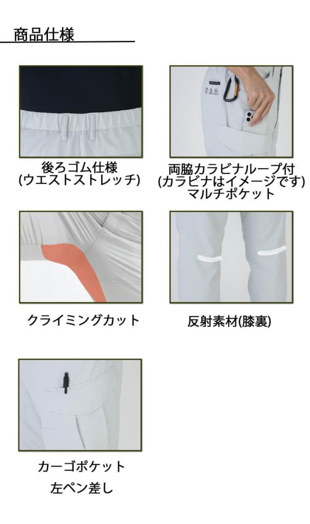 ・反射:反射素材で夜間屋外で働く方の視認性をキープ(膝裏)