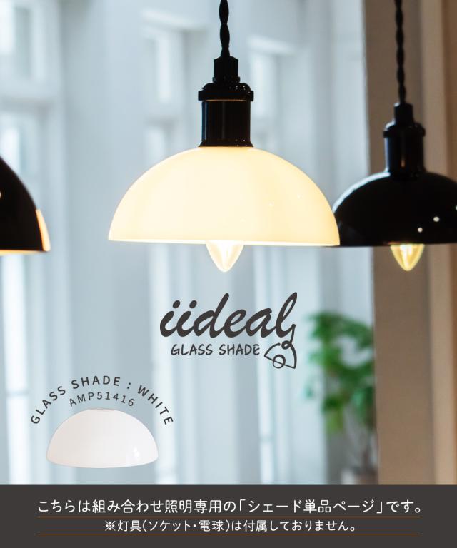 【Ampoule】 ランプシェード シェードのみ 傘 照明 おしゃれ ペンダントライト シーリングライト E17 1灯 デザインガラス リビング ダイニング 玄関 トイレ 階段 廊下 レトロ 北欧 ナチュラル シンプル モダン 照明器具 間接照明 インテリア ホワイト 乳白 iideal S イデアル