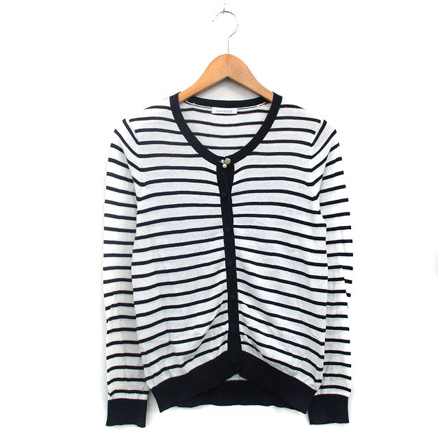 【中古】オリーブデオリーブ OLIVE des OLIVE カーディガン 長袖 コットン ボーダー S ホワイト 白 /KT29 レディース