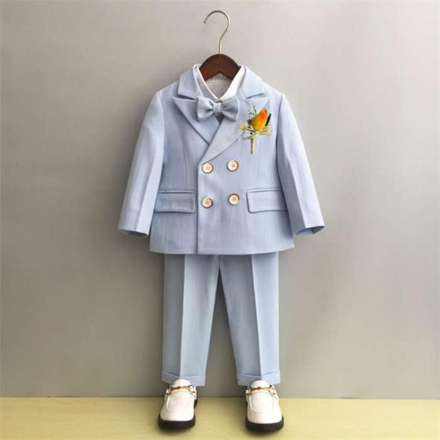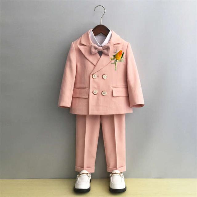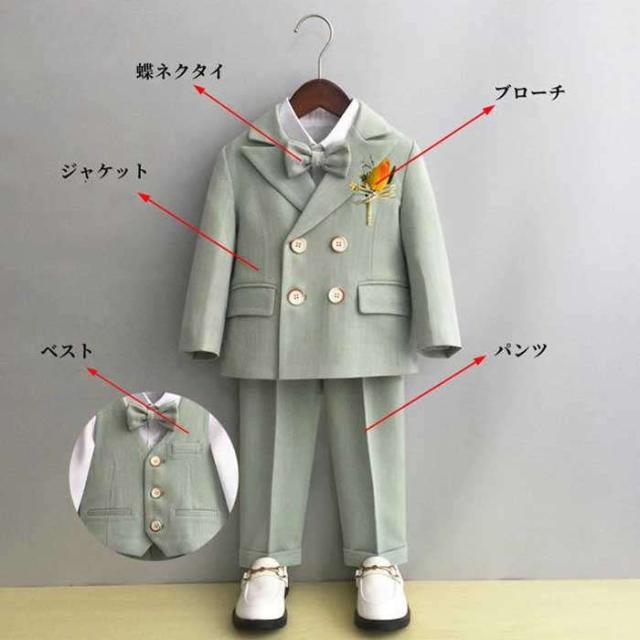 子供スーツ 男の子 スーツ フォーマルスーツ 韓国スーツ キッズスーツ ベビースーツ 5点セット ジャケット パンツ ベスト 蝶ネクタイ ブローチ