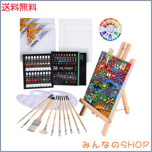 Ohuhu 油絵具 セット 56点セット 36色 油絵 油絵の具 絵画 画材 絵の具セット 初心者 大人 男の子 女の子 木製イーゼル 張りキャンバス