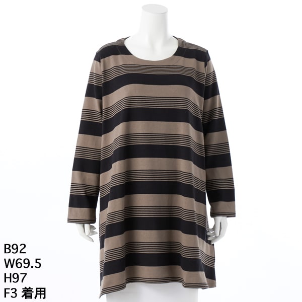 【大きいサイズレディース】ボーダーニットフレアチュニックドレス【日本製】
