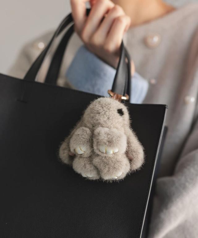 愛くるしい表情と佇まいのラビットファーうさぎチャーム。