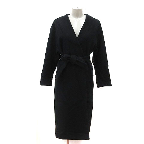 【中古】エジック Ezick ノーカラーコート ウール 総裏地 ウエストマーク M 黒 ブラック /MS レディース
