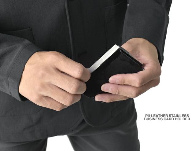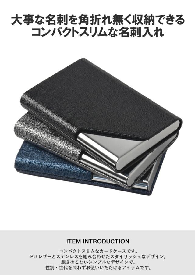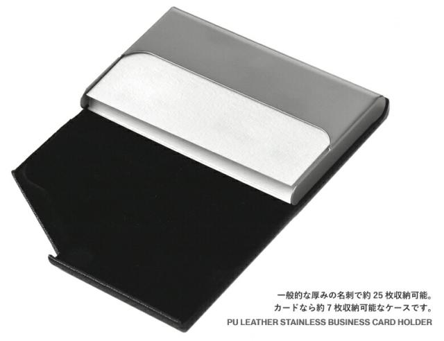 メンズ レディース カードケース 名刺入れ PUレザー ステンレス 名刺25枚収納 カード7枚収納 薄型 スリム コンパクト ビジネス スタイリッシュ【Z6H】【パケ5】