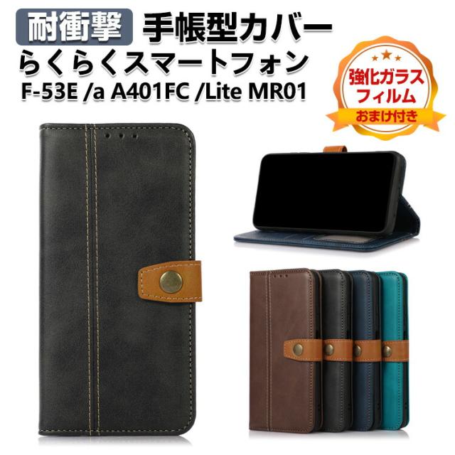 FCNT らくらくスマートフォン F-53E /a A401FC /Lite MR01 ケース カバー 耐衝撃 財布型 TPU&PUレザー スタンド機能 カード収納 便利性の高い 人気 手帳型カバー CASE 強化ガラスフィルム おまけ付き