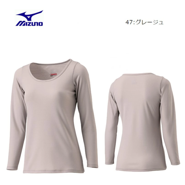 MIZUNO レディース ブレスサーモアンダーウエア Lサイズ 薄手 ラウンドネック 9分袖シャツ C2JAA81147 ミズノ アンダーウェア