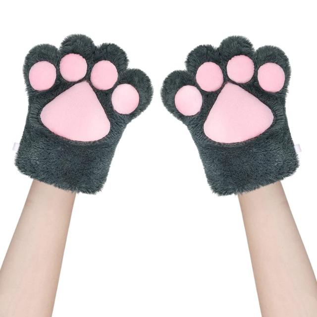 4本指デザイン、肉球付き、本格的で可愛い熊掌型のグローブ!仮装、コスプレにばっちりなアイテム!