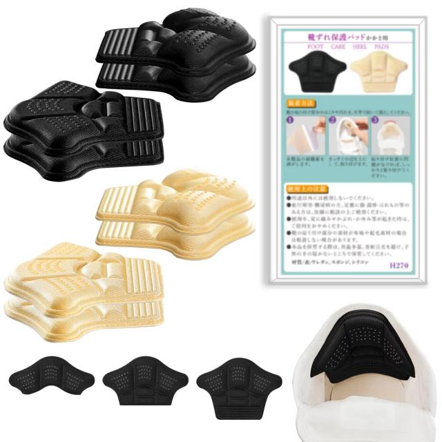 【抜群のクッション性】やわらかクッション素材が靴とかかとのブレを軽減し、歩行時の衝撃を和らげます。かかとを広範囲に包むようにカバーできる3D構造。面積が広いパッドなどでくつにしっかり貼れるのもメリットです、肌に優しいシリコン素材の滑り止め付き、滑り止め効果も抜群です。