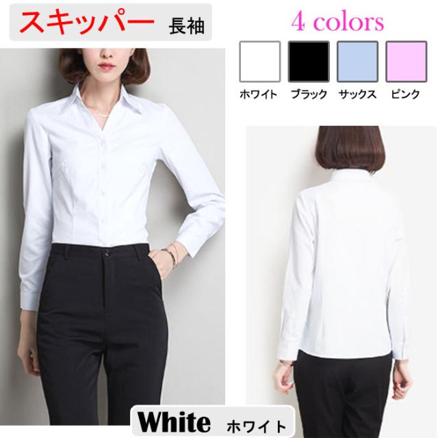 レディース トップス シャツ ブラウス ビジネス オフィス Yシャツフォーマル スーツ リクルート 就活 OL 事務服 無地 長袖 半袖 定番 開襟 スキッパー ホワイト オフホワイト ブラック サックス ピンク 白 黒 S M L LL 3L お急ぎ便 受取日時指定
