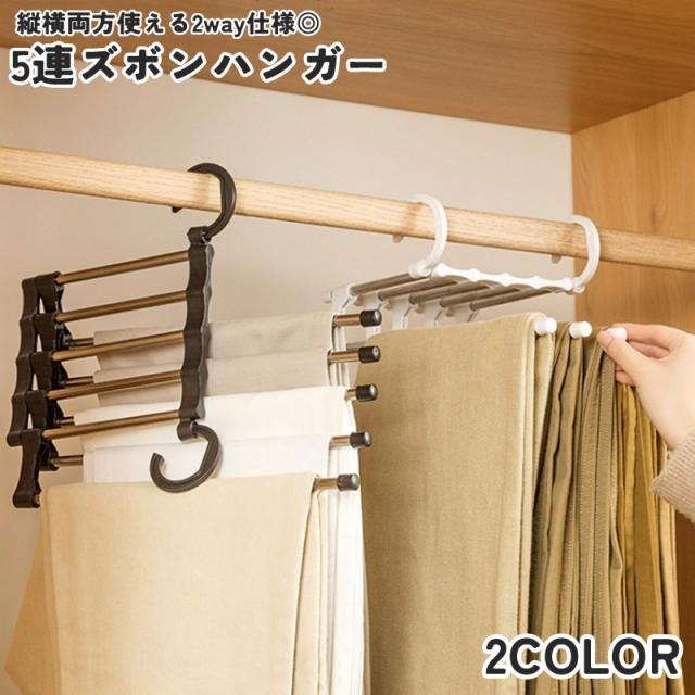 ズボンハンガー 5連 5段 折り畳み 縦横両用 2way 吊り下げ クローゼット収納 洗濯 物干し マルチハンガー 折りたたみ
