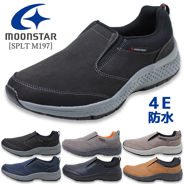 ムーンスター メンズ 防水 靴 サプリスト SPLT M197 スニーカー スリッポン 4E 幅広 moonstar 197 厚底 消臭 ウォーキング シューズ