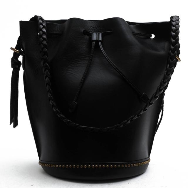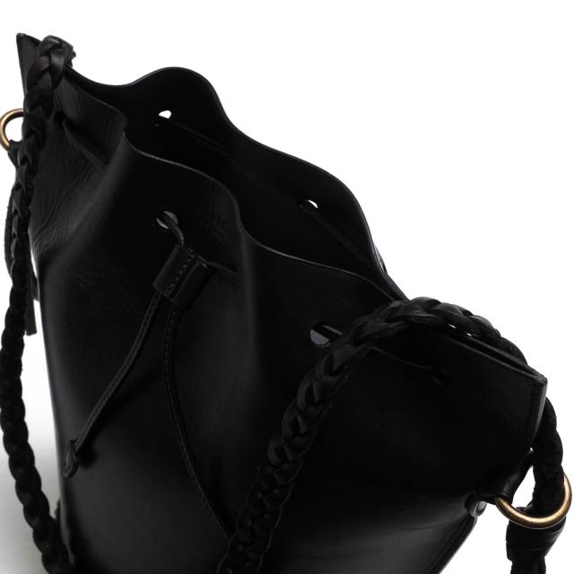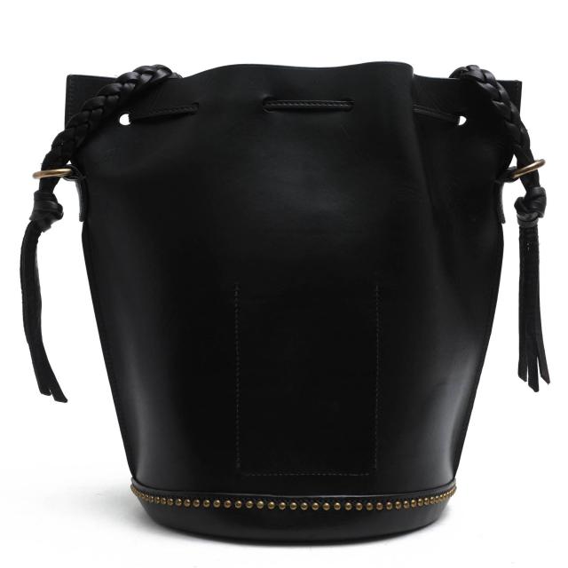 トレンドの巾着型のショルダーバッグ。シンプルなフォルムで、きめ細やかな牛革にスタッズデザインがアクセントに。お色も、とても上品でエレガントな印象です。コンパクトなサイズ感でありながら、開き口が大きく開き、マチも広いので収納力抜群。コーディネートにも合わせやすい鞄です。