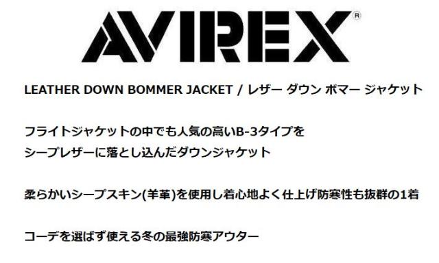 【羊革 シープスキン】AVIREX 本革 B-3 ダウンジャケット アウター ジャケット メンズ ブルゾン ミリタリー LEATHER DOWN BOMMER JACKET レザー Y_U 7833250066 7986907 ダウン ボマー ジャケット 革ジャン 正規品 ブランド おしゃれ アビレックス アヴィレックス
