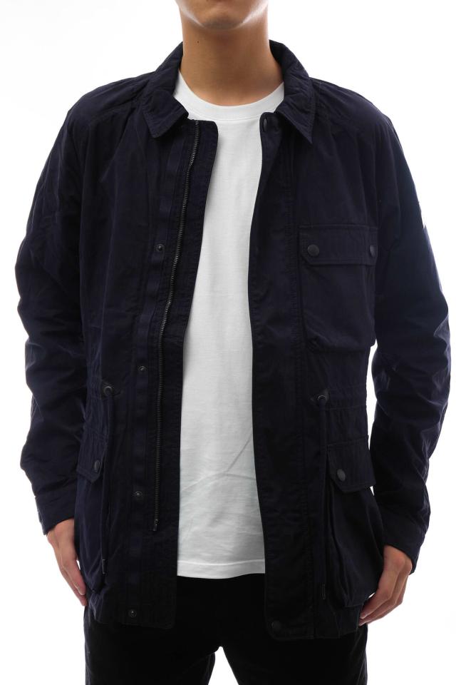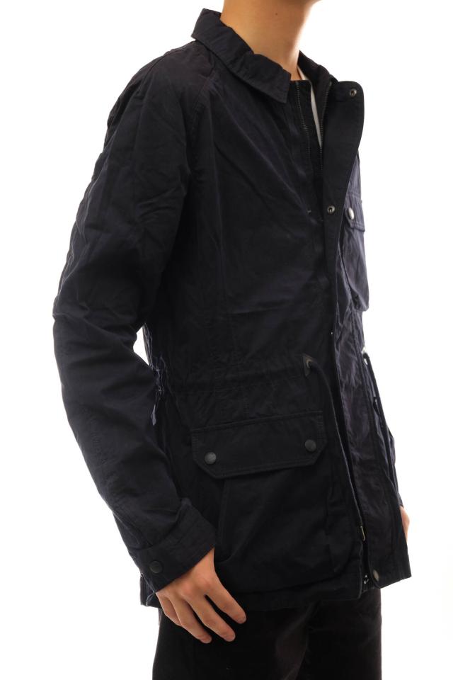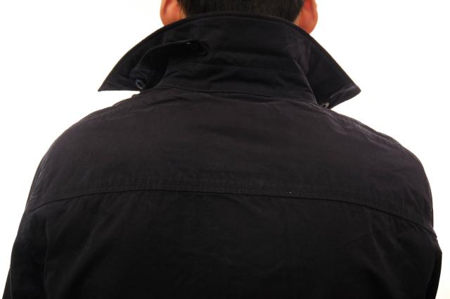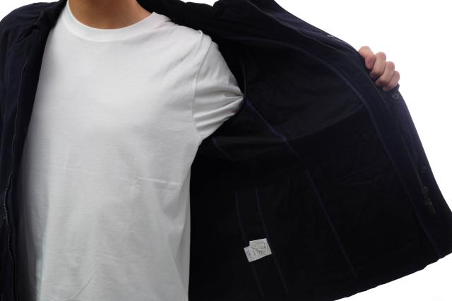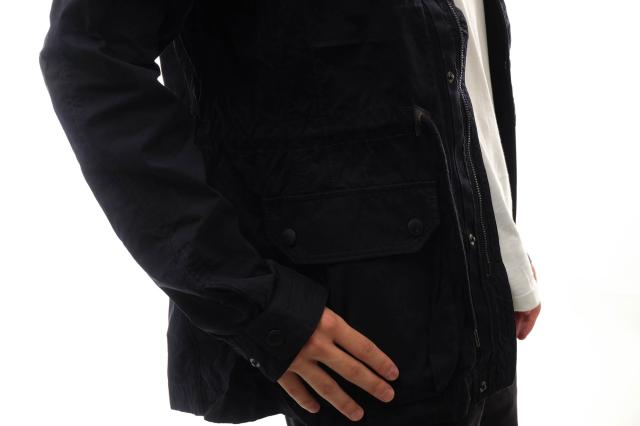 大人っぽく仕上げたハンティングジャケットはGIANDUIAというモデル。オールシーズン使えるマットな生地をスリムなシルエットに仕立てています。ウエストにはドローコードが付属し、フロントは比翼付きダブルジップ、フラップポケットはサイドからも手が入る2重構造とディティールにもこだわりを感じます。休日のカジュアルスタイルや通勤時のアウターとしても、オシャレに決まります。