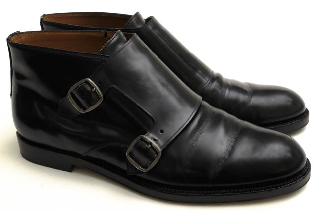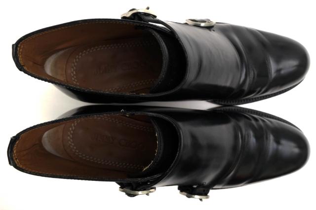 ○ジミーチュウ Jimmy Choo ガラスレザー 牛革 ジョッパーブーツ Saint James ダブルモンクストラップ レザーソール メンズ 【中古 中古