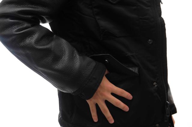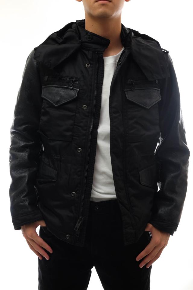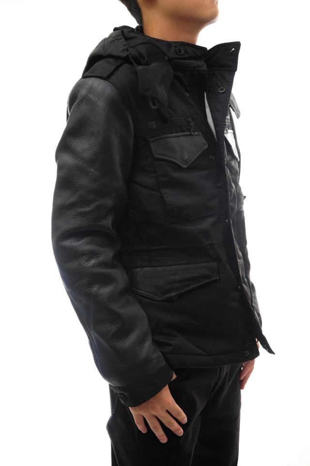 ◆特徴 袖レザー フード付き 中綿 M-65 ミリタリー