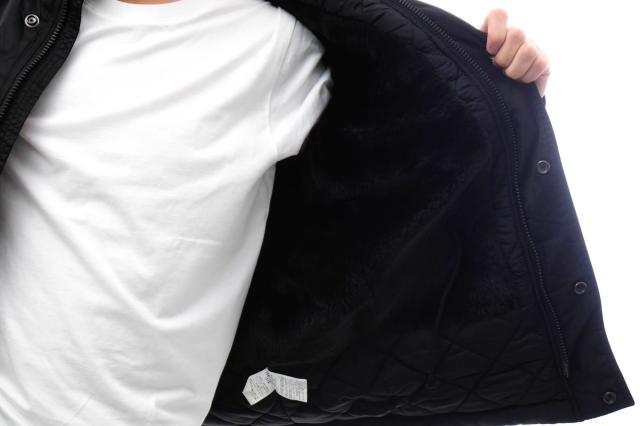 ◆素材詳細 表地:ナイロン100% 胴裏:アクリル100% 裏地:ナイロン65% ポリエステル35% 中綿:ポリエステル100% 革部分:牛革 リブ:アクリル70% 毛30%