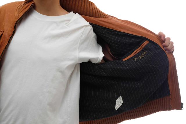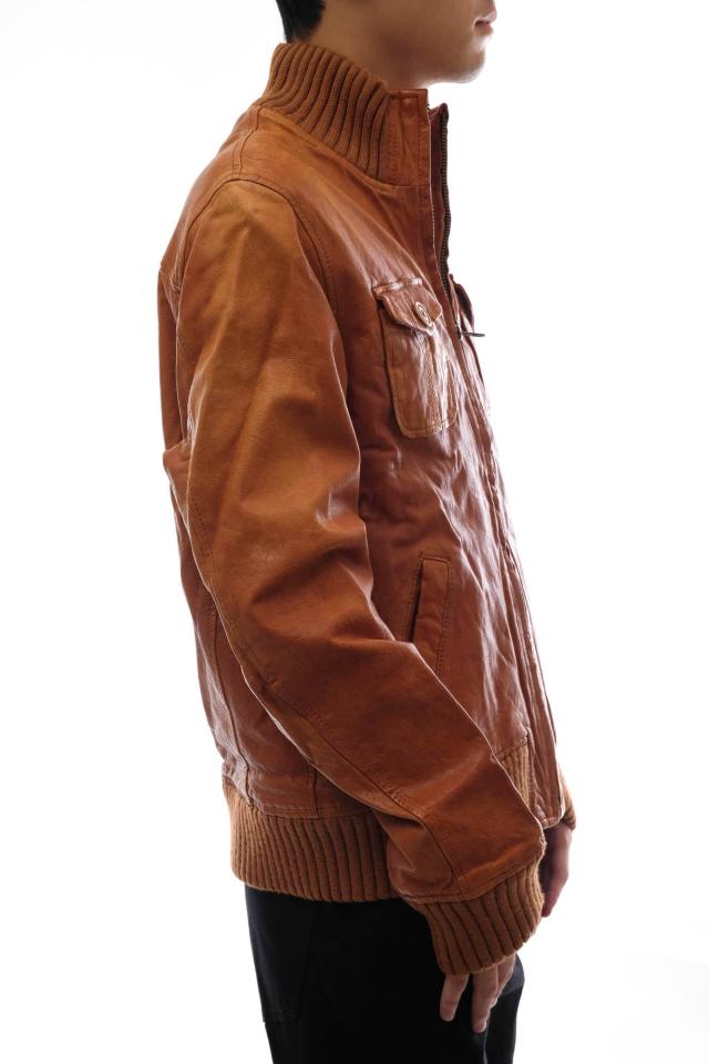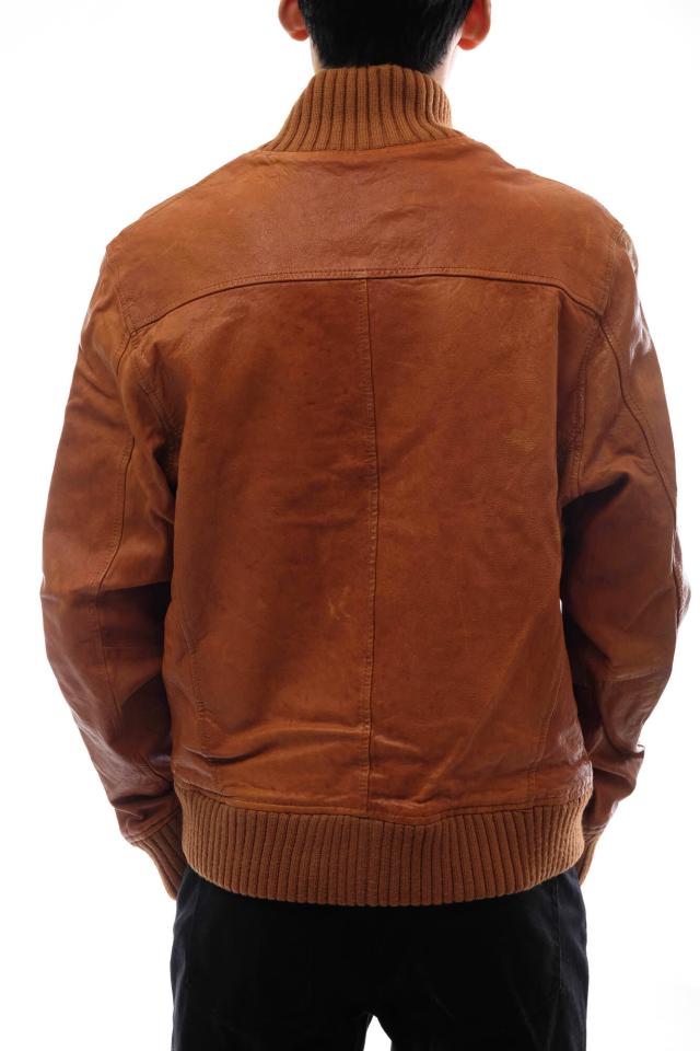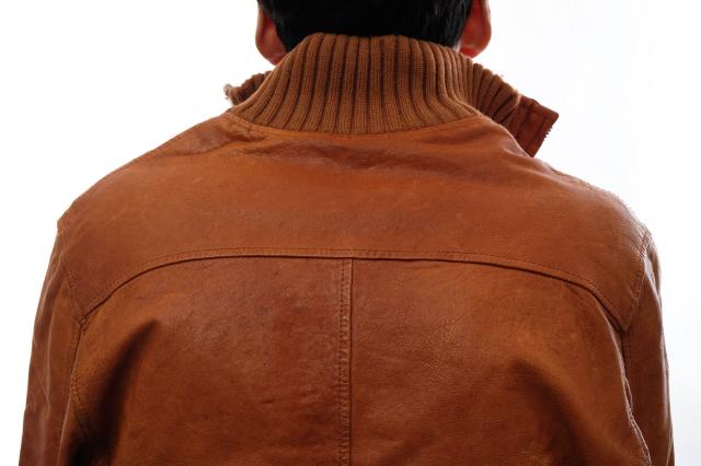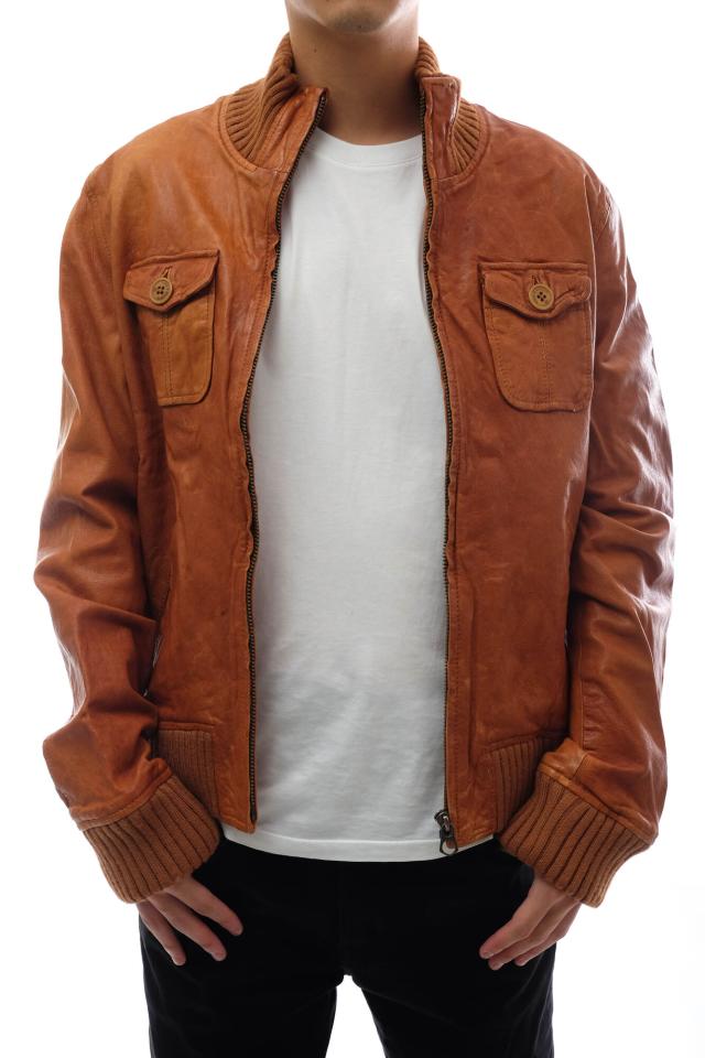定番のA-2型フライトジャケットを、スタイリッシュなシルエットに仕上げたモデル。素材にはウォッシュ加工を施した味のある本革を使用。