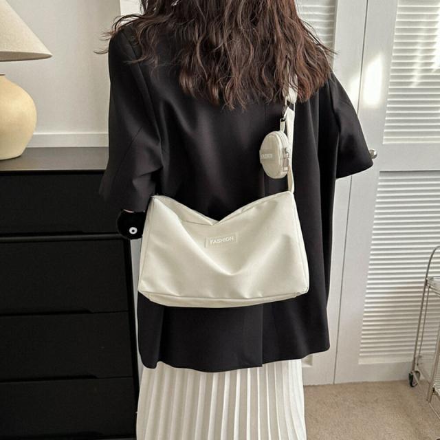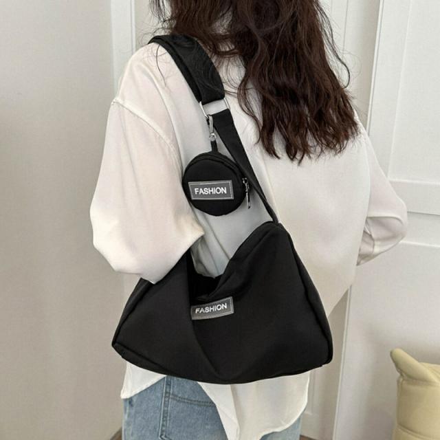 丈夫なナイロン素材で仕上げた軽量で実用的な大容量ショルダーバッグです