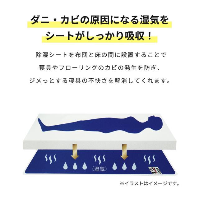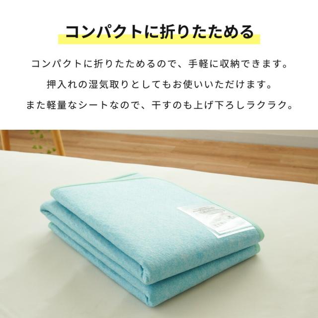 | ・ダニ・カビの原因になる湿気をシートがしっかり吸収! 除湿シートを布団と床の間に設置することで寝具やフローリングのカビの発生を防ぎ、ジメっとする寝具の不快さを解消してくれます。 ・ひと目でわかる 吸湿センサー付きセンサー付きの多機能吸湿シートが付いているため、干すタイミングがひと目でわかります。白またはピンクになったら天日干しを行ってください。 ・抗菌防臭加工付きで安心【SEK抗菌防臭加工】清潔・衛生・快適さを保証する日本の「繊維評価技術協議会」のお墨付きです。汗臭やアンモニア臭を消臭。 コンパクトに折りたためるので、手軽に収納できます。押入れの湿気取りとしてもお使いいただけます。また軽量なシートなので、干すのも上げ下ろしラクラク。 ・洗濯機で丸洗いできて清潔洗濯ネットに入れて洗濯機で丸洗いできます。洗濯後は天日干しにより吸湿力が回復するため、繰り返しお使いいただけます。 | |