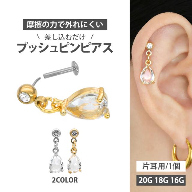 ピアス 軟骨ピアス 片耳用 ボディピアス 20G 18G 16G クリアドロップジュエルプッシュピンラブレット ピアッシングナナ