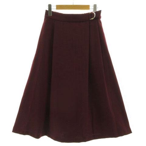 【中古】ドレスキップ DRESKIP ラップ風フラノミモレスカート 741-79023 フレア ミモレ丈 ウエストゴム エンジ L