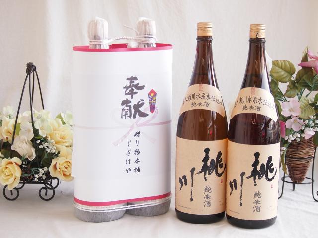 地鎮祭用奉献 縁起の良い日本酒セット 青森県産お酒2本縛り(桃川純米酒1800ml×2本)デザイン書道家 榮田清峰作